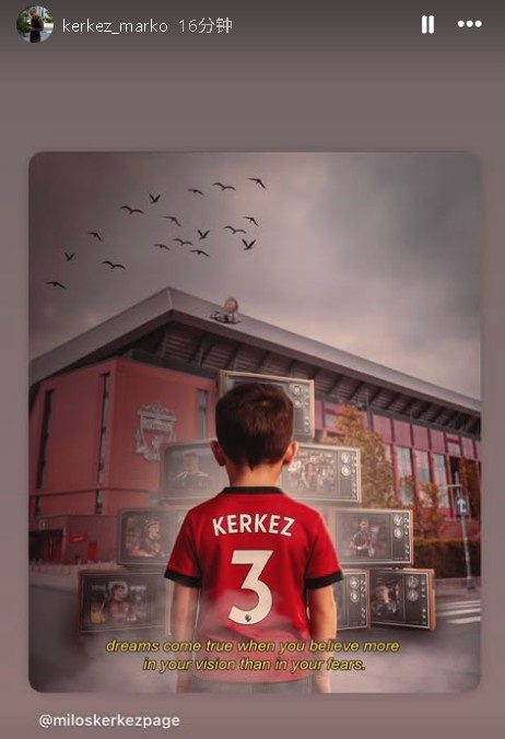 直播吧6月20日讯 科尔克兹的哥哥更新社媒,晒出一名身穿科尔克兹五号球衣的小男孩望向安菲尔德的图片,暗示科尔克兹即将加盟。